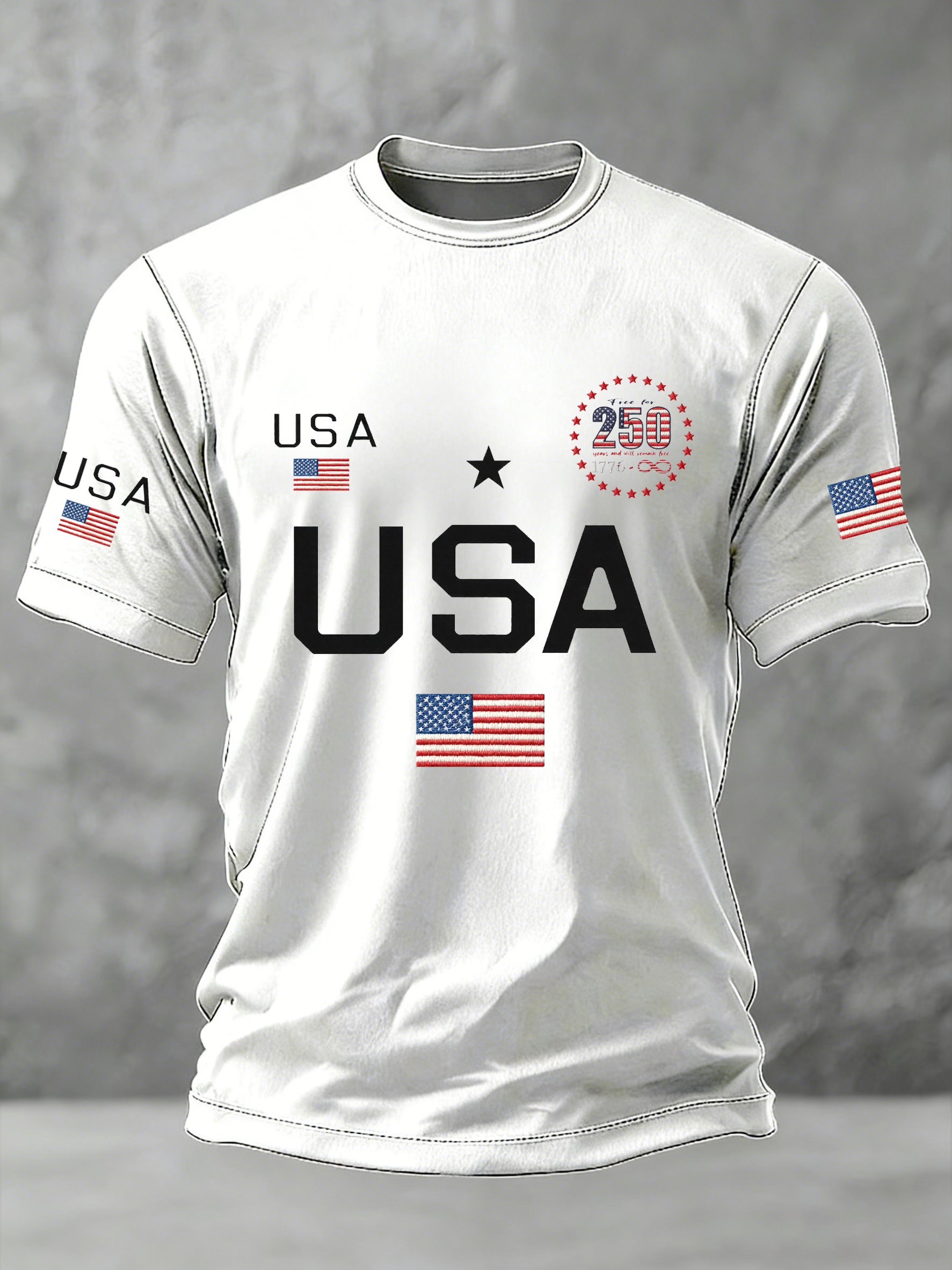 Men's Retro American 250th Anniversary Print Short-Sleeved T-Shirt